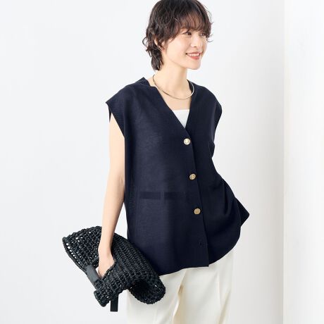 ・軽やかなシアー感が魅力のミラノリブ編みのベスト