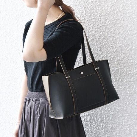 スッキリした見た目ながら荷物もしっかり入る、トレンドの横長ボストン型バッグ。
