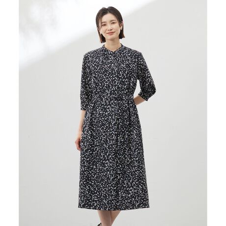 ■素材天然タッチなポリエステルスパン糸素材を使用。柄は小花と幾何の中間柄でシーンを問わず着やすい柄に仕上げています。
