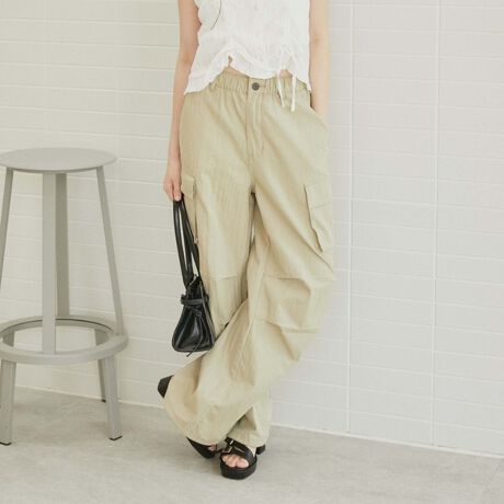 カジュアルな印象のカーゴパンツもさりげないタックで女性らしいシルエットに。