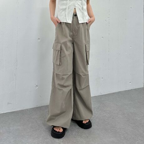 カジュアルな印象のカーゴパンツもさりげないタックで女性らしいシルエットに。