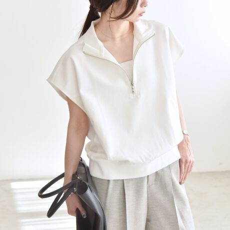 マルイウェブチャネル   /   カランシエル   /   トップス   /   Tシャツ・カットソー   /   quaranciel:〈洗濯機可能〉ライト ポンチ ハーフジップ フレンチスリーブ TEE