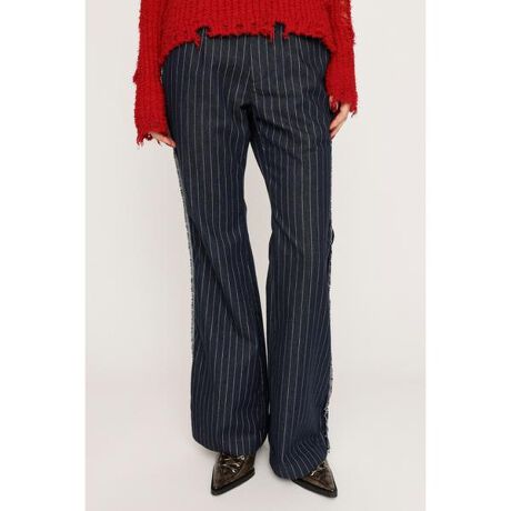 【CUT OUT L/W DENIM FLARE PT】■POINT:サイドに切りっぱなしデザインを施したフレアパンツ。マニッシュなストライプ柄のアイテムです。■DETAIL:トレンドのローウエストで、立体感のあるシルエットがポイント。ヒップから脚先まですらっとしたラインなので、美脚効果も抜群。■STYLING:同シリーズのジャケット(030ISZ30-3061)とセットアップで着用できます。シンプルなトップスのワンポイントにしたり、クロップ丈のトップスと合わせてヘルシーな肌見せを楽しむのもおすすめ。■FABRIC/MATERIAL:先染めのストライプ生地を使用しています。■透け感:なし■光沢感:なし■伸縮性:なし■裏地:なし※商品画像はサンプルのため、色味やサイズ、素材の混率等の仕様に変更がある場合がございますので、予めご了承ください。※一部予約商品につきましては生産上の都合によりお届け予定日や店頭発売と前後する場合もございます。※追加生産商品は、一部の店舗、通販で販売中の場合がございます。予めご了承下さい。