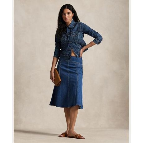 デニムを使用して柔らかな手触りを演出したAラインスカート。シェイプされたヨークとややフレアの裾を取り入れたパネル構造が特徴。ウォッシュ加工を施し、濃いインディゴトーンでヴィンテージ風のミディアムカラーを実現・Aラインのシルエット / ミッドカーフ丈・左サイドシームにスプリングホック留めのジッパー / フロントとバックにヨーク / パネル構造・生地や布張りの室内装飾品に色移りすることがあります・Ralph Laurenのコットン製品を選ぶことで、環境の保護と修復に努めながら、コットン業界が今後も成長を続けられるように支援するBetter Cotton(TM)ミッションへのRalph Laurenの取り組みをサポートすることになります・本商品は物質収支方式に則って材料を調達しているため、全ての製品にBetter Cotton(TM)が含まれない可能性があります・モデル身長178cm、着用サイズ4※商品の色味は、光のあたり具合など諸条件により色感が多少異なって見える場合がございますので予めご了承下さい 【素材】・本体:綿 98%、ポリウレタン 2%【生産国】スリランカ