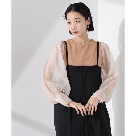 ・きれいめなオーガンジー素材の袖にカットジョーゼット素材を組み合わせた異素材コンビ