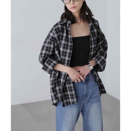 〔fabric&design〕細番手のコットン素材のチェックシャツ。織りの特性によりぽこぽことした表面感が特徴的です。シワもきになりずらく、程よい薄さで真夏までお使いいただけます。オーバーサイズですが程よいサイズ感なので合わせやすいです。シンプルなオフベースとブラックベースの2色展開。〔stylinig〕程よいオーバーサイズなのでビスチェやキャミワンピのインナーとしてもお使いいただけます。カップ付きキャミソールやタンクなどの上からさくっと羽織って抜け感のある着こなしがおすすめ!