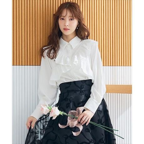 【甘すぎない大人なフリルデザインで気品ある着こなしに仕立てる、ラッフルフリルシャツブラウス】【Point】・立体的なフリルを前後に大胆にあしらったシャツブラウス。・台襟ボタンにはキラキラと輝くビジューボタンを施し、女性らしい上品さを演出します。・高見えするフロントの比翼仕立てが、品良く洗練された印象に仕立ててくれる、オンオフ兼用おすすめの一着です。ケア方法:手洗い可能透け感:なし(オフのみ多少あり)裏地:なし伸縮性:なし光沢感:なし生地の厚さ:中肉