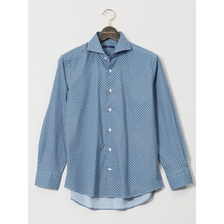 ストレッチ ジオメトリック柄 カッタウェイ長袖シャツ