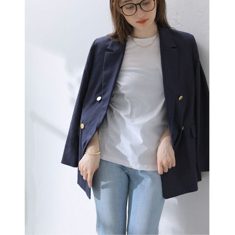 定番のテーラードジャケットは、麻混のサラッとした生地を採用。