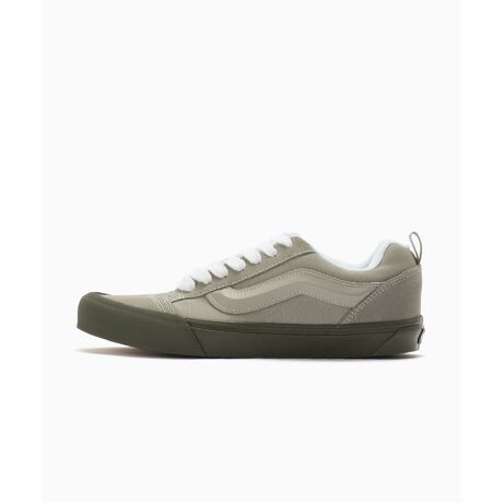 「OLD SKOOL (オールドスクール)」のクラシックなシルエットを再解釈した 『KNU SKOOL (ニュー スクール)』。ボリューム感のあるシュータンとライニング、丈夫なスエードアッパー、特徴的なラバーワッフルアウトソール、そしてエンボス加工されたサイドストライプなど、90年代のスケートシューズを彷彿させるディテールが詰め込まれています。全体に洗い加工を施し、ヴィンテージテイストな仕上がりの一足をぜひご堪能下さい。