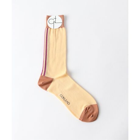 ”CONLEAD”Connect+Co-leadの造語。Co-lead:助演の意。今シーズンデビューのソックスブランド。靴下がスタイルの助演として洋服と靴を繋げる役割を担いたいという想いの元立ち上げられました。