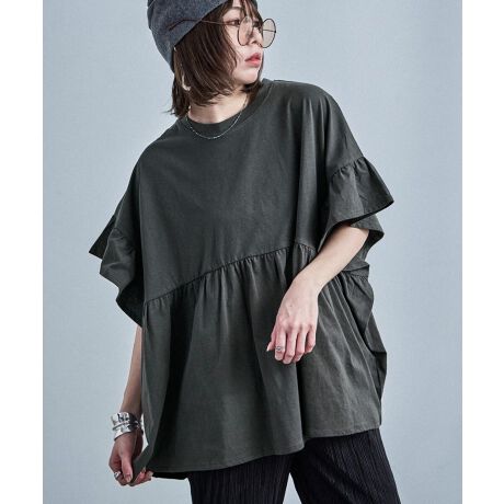 Fashion Letter ファッションレター 着心地抜群、安心のコットン100%のカットソーはフリル袖とギャザー切り替えがポイント。