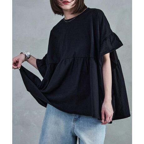 Fashion Letter ファッションレター 着心地抜群、安心のコットン100%のカットソーはフリル袖とギャザー切り替えがポイント。