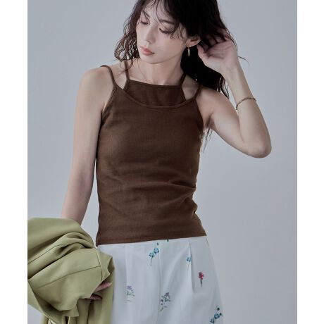 こなれ感をプラスしてくれるレイヤード風のリブキャミソール。