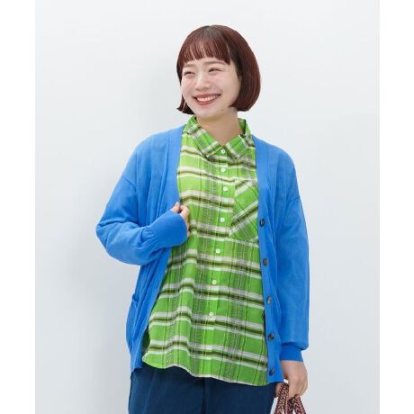 合わせるアイテムを選ばず着ていただける万能Vカーデです。