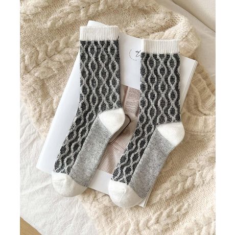 織り柄デザインが特徴のコントラストソックス。春、秋、冬に適しています。