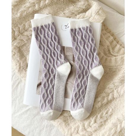 織り柄デザインが特徴のコントラストソックス。春、秋、冬に適しています。