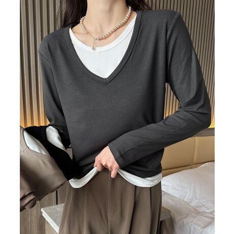 【Banico】Vネックシンプル長袖トップス