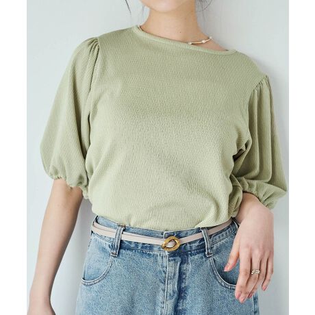 【mil (ミル)】カット楊柳 パフスリーブプルオーバー【低身長・小柄】