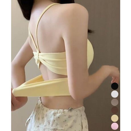 カップ付きで1枚で着られる背中あきデザインのキャミソール