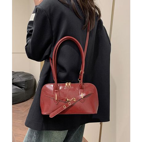 トレンド感のあるロングハンドルのフェイクレザートートバッグ