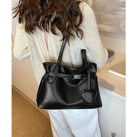 ハート型のチャームが魅力的な、洗練された輝きを放つメタリックトートバッグ