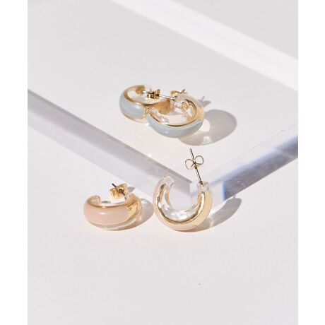 優しいエポカラーが特徴のデザインピアス。クリアにメタルを合わせたエレガントな雰囲気もおしゃれなポイントです。フープの丸みあるフォルムが女性らしく、程よく存在感のあるサイズでアクセントに最適。様々なコーディネートにマッチしてシーズンレスで合わせていただけるおすすめのアイテムです。※モデル着用画像は、光の当たり具合で色味が違って見える場合がございます。※お使いのモニター環境によって商品の色味が違って見える場合がございます。