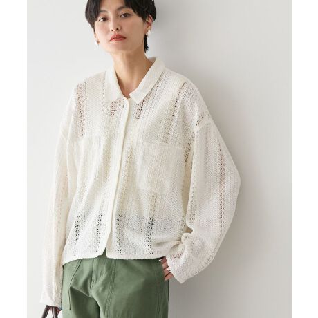 春の装いにぴったりなレース編みがポイントのダブルポケットシャツ。肩落ちしたボックスシルエットに、トレンド感溢れる短丈が特徴的なデザインです。さらりとしたコットン混素材で快適な着心地を実現。どんなボトムも合わせやすく、インナー次第で幅広いコーディネートがお楽しみいただけます。透け感[あり]