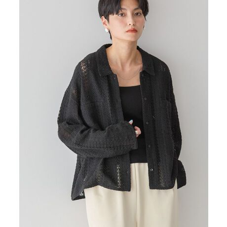 春の装いにぴったりなレース編みがポイントのダブルポケットシャツ。肩落ちしたボックスシルエットに、トレンド感溢れる短丈が特徴的なデザインです。さらりとしたコットン混素材で快適な着心地を実現。どんなボトムも合わせやすく、インナー次第で幅広いコーディネートがお楽しみいただけます。透け感[あり]