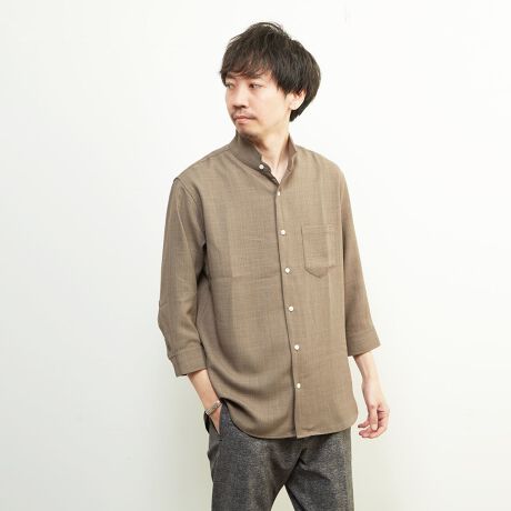 小ぶりなワンピースカラーの7分袖は、羽織としても使えるカジュアルシャツです。