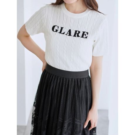 ロゴジャカードにパールビーズを散りばめたこなれフェミニンニットトップス