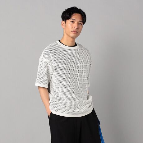 半袖メッシュ クルーネックニット