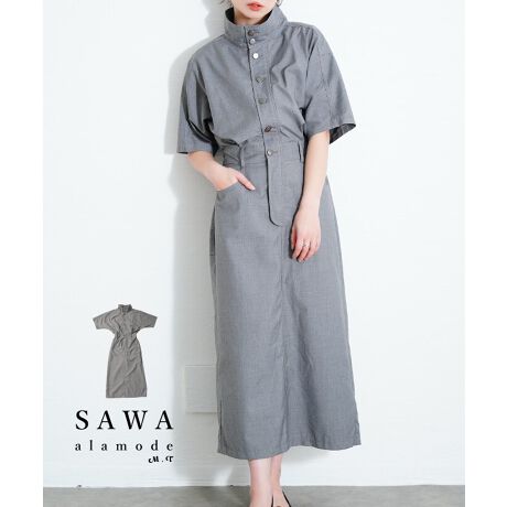 知的なグレーで統一されたワンピースは、落ち着きのある大人顔なスタイリングにぴったりな一枚。首元までボタンを閉じればスタンドネックに仕上がり、シャープなモード感を演出。まるでセットアップのようなデザインだから、一枚でもワンツーコーデのように着映えるワンピース。背面のウエスト部分にはギャザーゴムが配され、程よくウエストをシェイプすることで、メリハリのあるシルエットに。すとんとしたIラインでスタイリッシュさが漂い、足首が見える絶妙な丈感は足下をすっきりさせ、後ろ側の裾には深めのスリットで抜け感をプラスし、足さばきも快適に。首元のボタンを外し、レイヤードも楽しめるワンピースは、小物やフットウェア、アウターなどをシフトするだけで幅広いスタイリングを楽しめる、シンプルだけど拘りを感じさせてくれるワンピースです。
