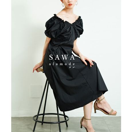 デコルテを華奢に見せるギャザーVネック襟ワンピース。パフスリープで大人可愛いさアップのAラインワンピース。デコルテをすっきりとキレイに魅せるVネックで華奢見え。後ろも程よく開いておりセクシーになりすぎず背中がきれいに見えるデザイン。丈が長めのワンピースドレスなのでちょっとしたお呼ばれにもピッタリです。