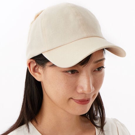後ろ側にキャップと同生地でデザインされたバタフライが斬新です。綿麻素材なので夏に涼しく軽やかに被れます。グリーンを選びましたが、ミント色に近い爽やかなグリーンです。