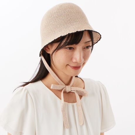 アナスイのアイコンモチーフTITTI(黒猫)のブローチが付いたバブーシュカ風クロッシェ。ニットリボンを顎下で結んでも、後ろリボンにしても、リボン垂らしても可愛く被れます。軽くシャリ感がある爽やかな擬麻加工をした綿を使用している為、春・夏・秋と使用できます。どんなコーデにも合わせやすく被るだけで、一段とシーズンムードを盛り上げてくれるアイテムです。手洗いが出来るのも嬉しいポイントです。