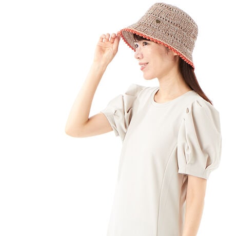 バイカラーラインの入ったスカラップデザインがポイントのニットクロッシェ。軽くシャリ感がある爽やかな擬麻加工をした綿を使用している為、春・夏・秋と使用できます。つば部分はUVカット素材が使われていて気になる日差しもケア。手洗いが出来るのも嬉しいポイントです。サイズ調整も可能です。</div>
