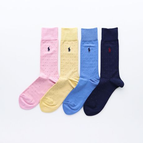 代表的なポニーロゴが刺しゅうされたカジュアルにもビジネスにも使える派手すぎない小さなドット柄のソックスです。