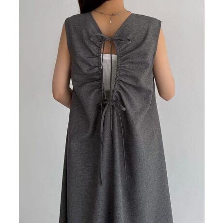 callautia 薄くて軽いリネンライクバックオープンAラインワンピース