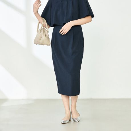 《セットアップ対応》ウォッシャブル麻調タックタイトミディスカート