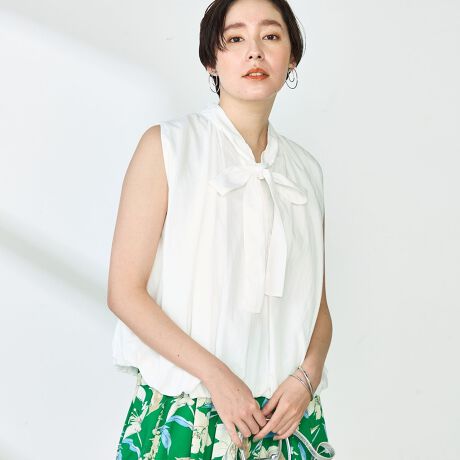 ・バルーンシルエットが新鮮なリボン付きブラウス