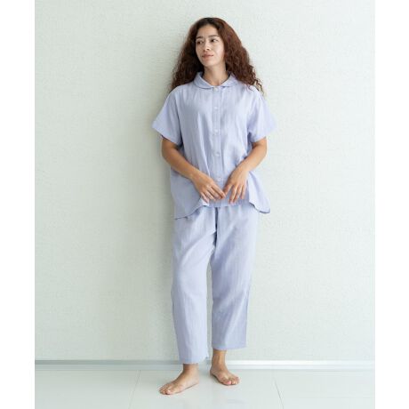 Wガーゼで肌にやさしくゆったり感があるサイズでパープルの色合いも丁度良いです。ゆっくり休めるパジャマです。