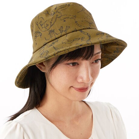 星座や星占いにフォーカスし、オリジナルで書き上げた星座柄のプリント生地を使用した中つばクロッシェ。つばの内側には一級遮光の東レ