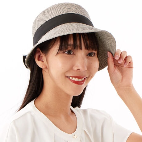 ペーパーブレードの帽子アイテムで人気のビューランスから、普段使いしやすい小つばのクロッシェ。腰にはグログランリボンの巻き仕様。帽子本体は手洗いができUV対応。おでこに当たる汗止めすべりには、ファンデーションの汚れが落ちやすい抗菌・防臭素材を使用しており、サイズ調節が可能です。