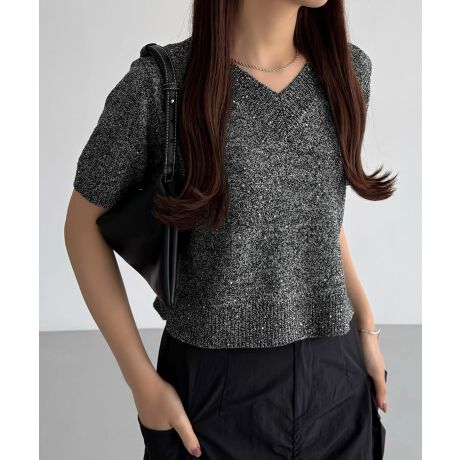 callautia Vネックショート丈半袖ニット