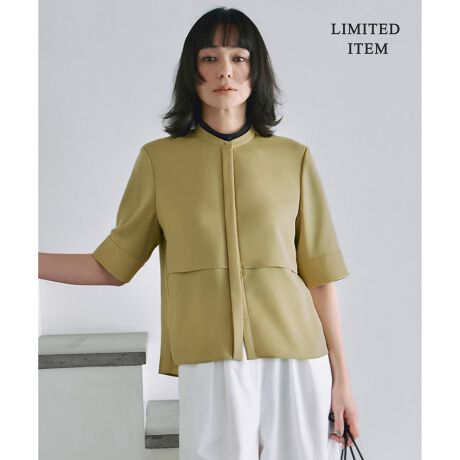 ■デザインバンドカラーで程よくゆったりとしたサイズ感がポイントのクロップドシャツです。フライヨーク、サイドスリットの入った前後差のある今シーズンらしいバランスで、一枚でも羽織としても着用いただけるアイテムです。