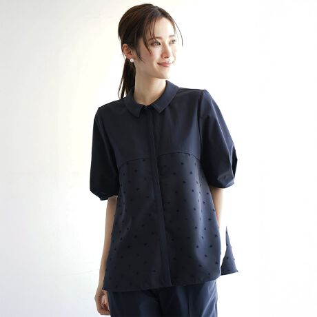 ・上質なドット柄のジャガード素材との異素材ミックス。