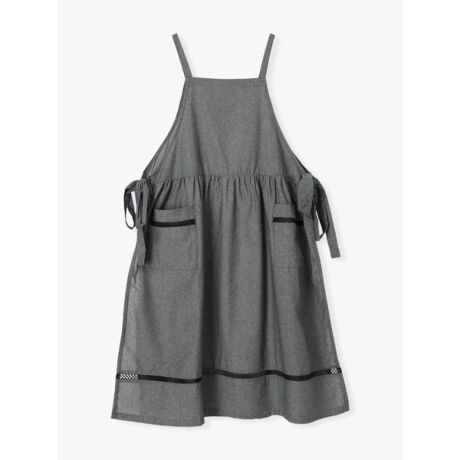 ポケットと裾のハシゴレースがアクセントをプラスするエプロンワンピース。