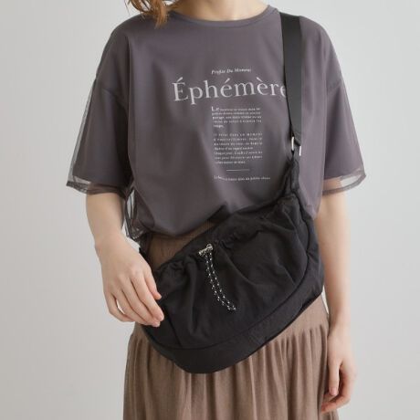 ムーン型フォルムに、ドロストデザインのポケットがデザインポイントの軽量ショルダー。