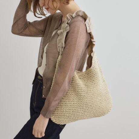 細いペーパー編みが上品で、大人フェミニンな夏バッグ。